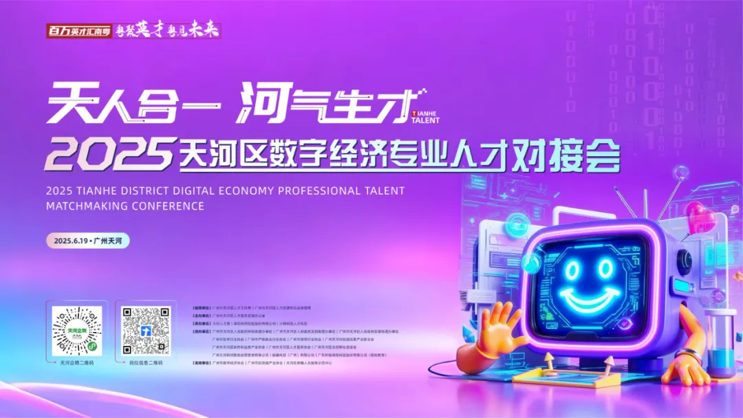 6月19日下午,广州(国际)科技成果转化天河基地内人潮如织、气氛热烈,“天人合一,河气生财”——2025天河区数字经济专业人才对接会盛大启幕。本次活动是贯彻落实全省高质量发展大会精神和“百万英才汇南粤行动计划”要求部署,聚焦软件产业人才引育,开展“学子到天河”、“国聘”行动,由广州市天河区人才工作局、广州市天河区人力资源和社会保障局指导,广州市天河区人才服务管理办公室主办,天河人才港、清控科创控股股份有限公司、小样科技人才社区承办的大型人才对接会。