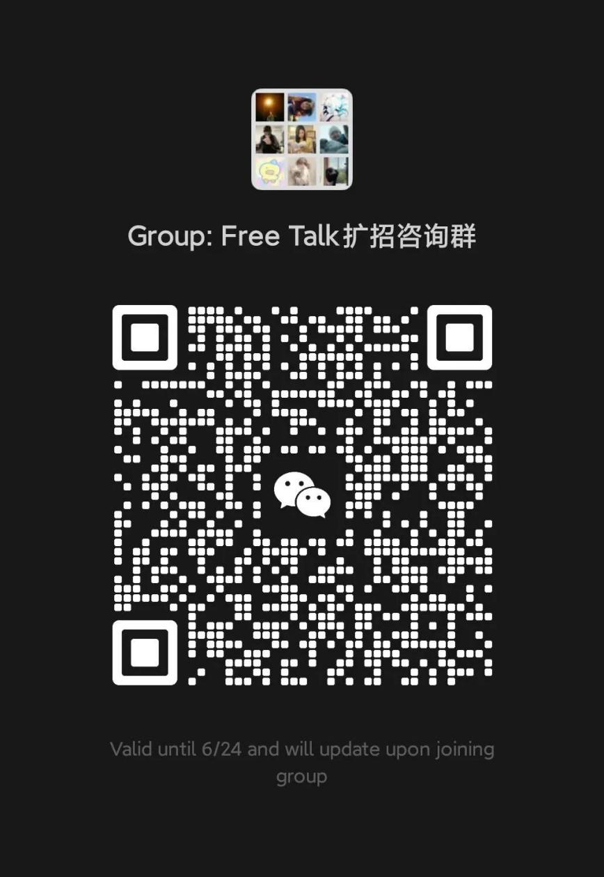如有疑问可扫描下方群二维码进入Free Talk扩招咨询群,进行进一步的沟通。