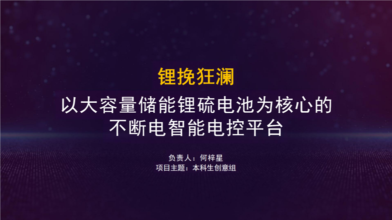 本项目致力于打造核心为储能锂硫电池的户用智能电控平台,保障居民用电不断电、加快节能减排改造升级,致力成为中国居民生命财产安全的坚实后盾。本团队钻研锂硫电池行业新技术,深入相关企业学习研究,不断与专业技术人员探讨锂电行业未来发展趋势,革新锂硫电池的制备技术,取得了阶段性的研究成果。