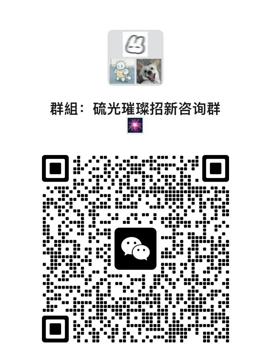 2. 将文件打包压缩并命名为:“硫光璀璨招新+意向组别+学院+名字”,发送到2305384318@qq.com;